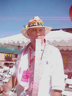 The drinks were very welcome on a hot day - that looks like some serious camera work on his neck - tourist?